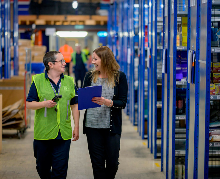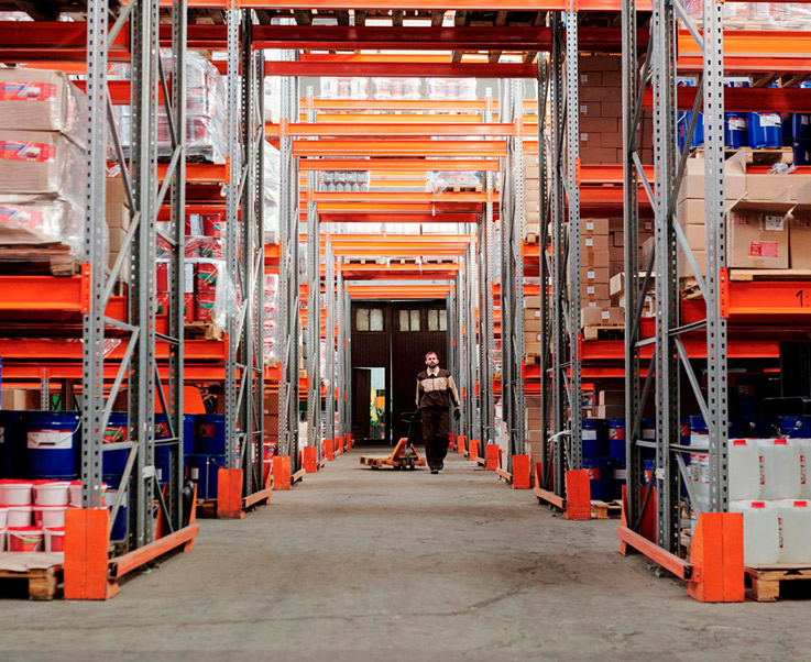Guiado a través de los pasillos y estanterías para reponer el producto recibido del proveedor/fabricación.